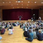 Wie immer am letzten Schultag vor den Ferien fand auch diesmal vor den Herbstferien in der zweiten Stunde die Showtime statt. Die ganze Schule versammelte sich in der Aula. Es gab wieder Beiträge aus verschiedenen Klassen. Ganze Klassen oder einzelne Gruppen präsentierten sich und auch ein gemeinsamer Tanz fehlte nicht.