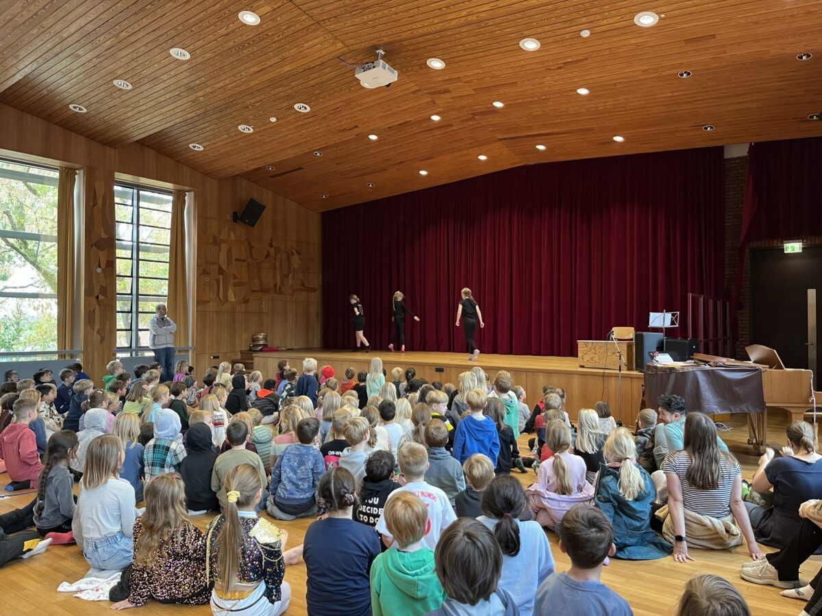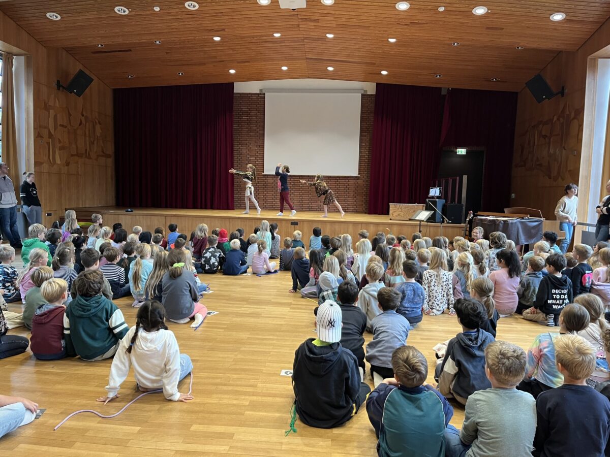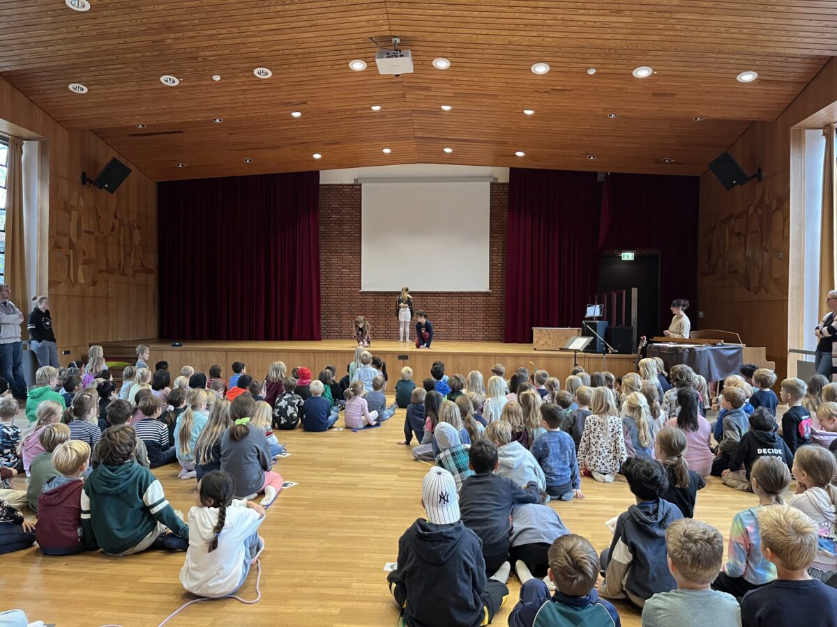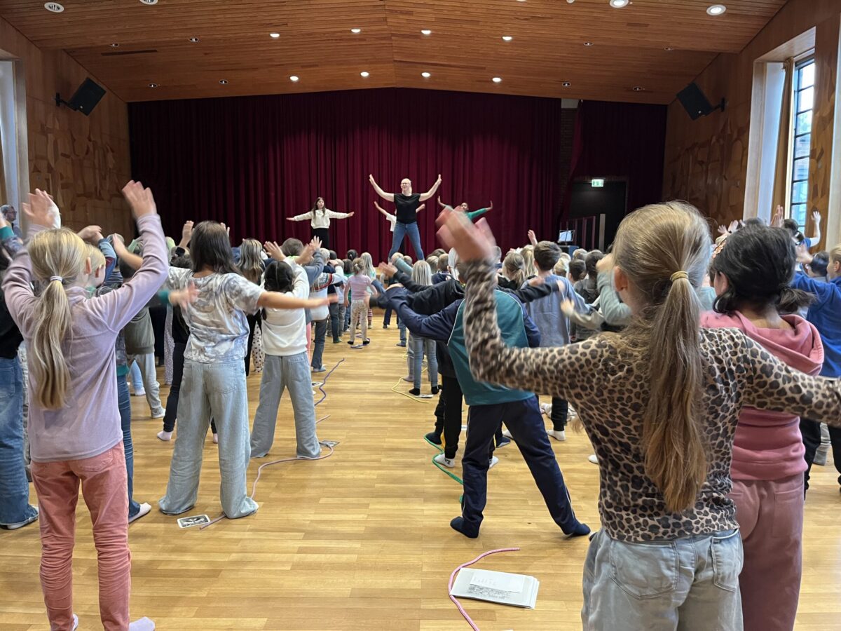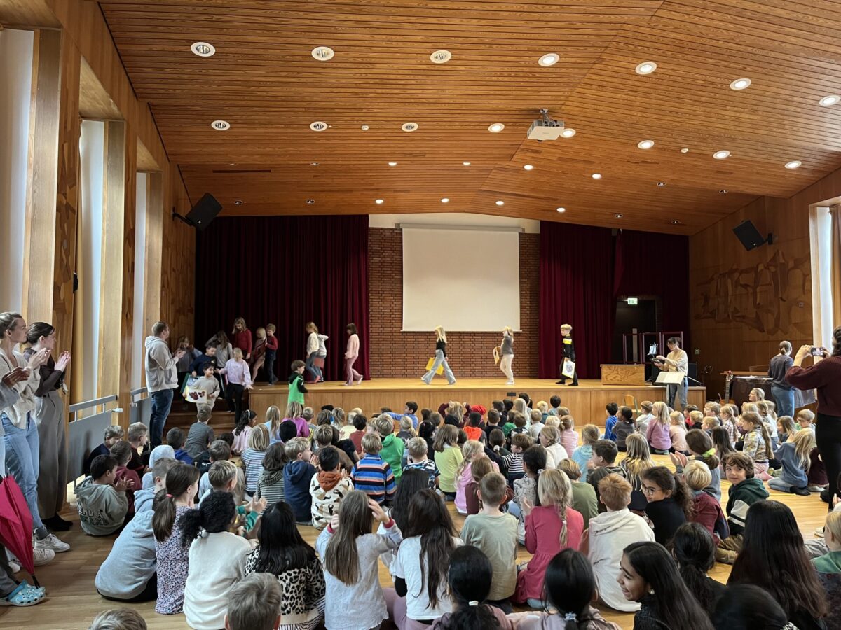 Wie immer am letzten Schultag vor den Ferien fand auch diesmal vor den Herbstferien in der zweiten Stunde die Showtime statt. Die ganze Schule versammelte sich in der Aula. Es gab wieder Beiträge aus verschiedenen Klassen. Ganze Klassen oder einzelne Gruppen präsentierten sich und auch ein gemeinsamer Tanz fehlte nicht.