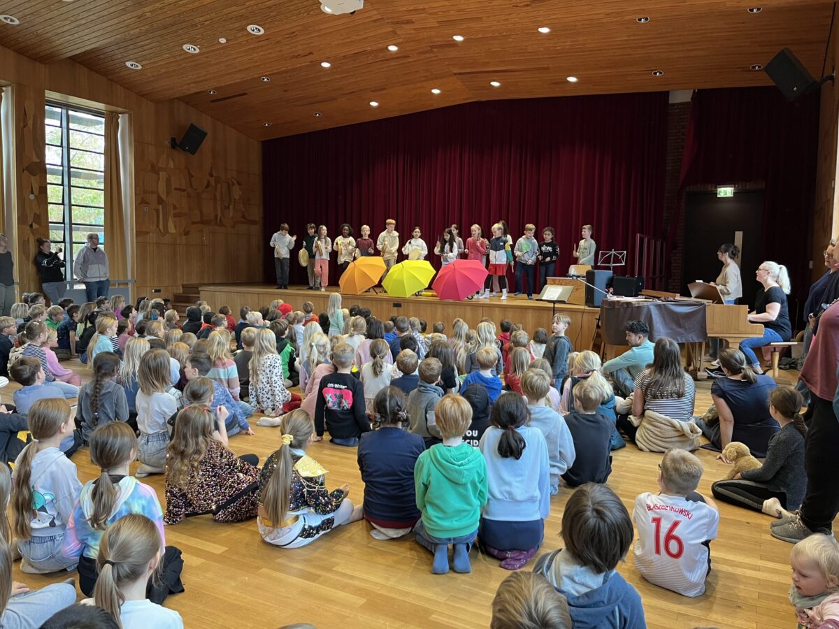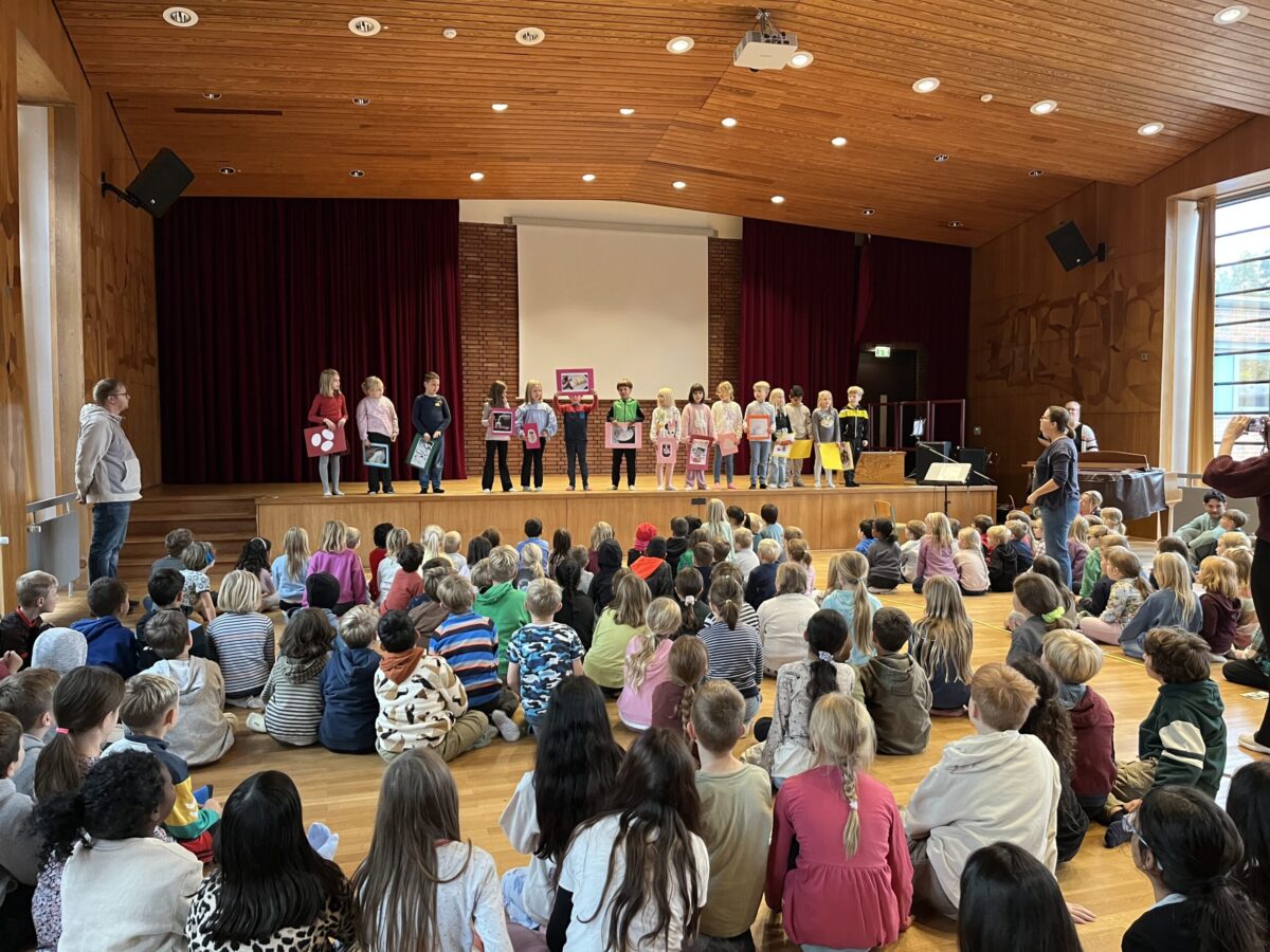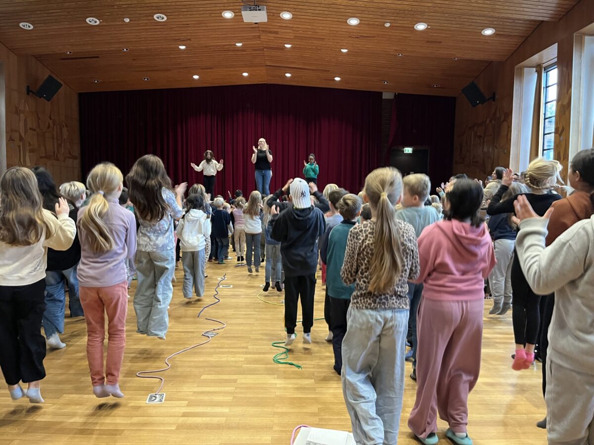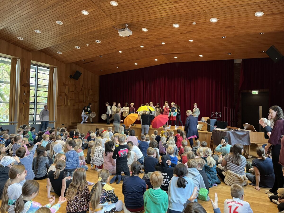 Wie immer am letzten Schultag vor den Ferien fand auch diesmal vor den Herbstferien in der zweiten Stunde die Showtime statt. Die ganze Schule versammelte sich in der Aula. Es gab wieder Beiträge aus verschiedenen Klassen. Ganze Klassen oder einzelne Gruppen präsentierten sich und auch ein gemeinsamer Tanz fehlte nicht.
