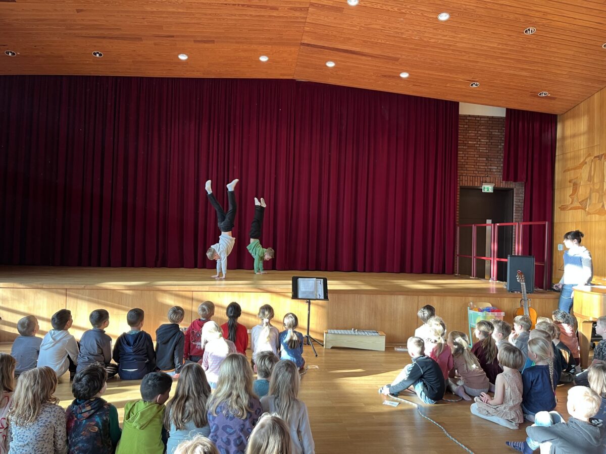 Am letzten Schultag vor den Märzferien fand wieder in der Aula eine Showtime statt. Die ganze Schule war versammelt. Diesmal zeigten hauptsächlich Dritt- und Viertklässler ihr Können, ob einzeln, in Gruppen oder als ganze Klasse. Die Zuschauer waren begeistert und wer nicht aufgeführt hat, ließ sich motivieren, vielleicht selbst einmal einen Auftritt zu wagen.